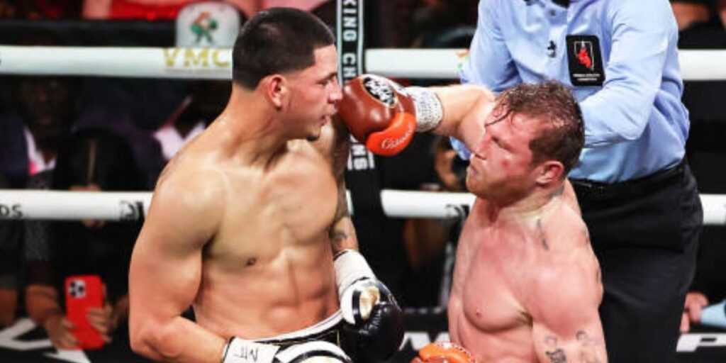Berlanga, quien sufrió su primer revés en su joven historia profesional (ahora 22-1 con 17 victorias por nocaut), en ocasiones logró conectarle fuerte a Canelo Alvarez, pero sin ninguna posibilidad de atropellarlo.